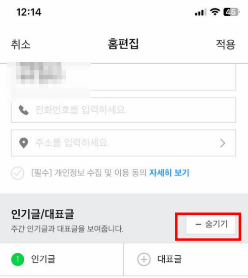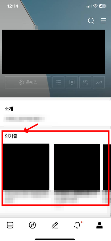모바일 블로그를 로그인한 상태에서 홈편집을 눌러주세요