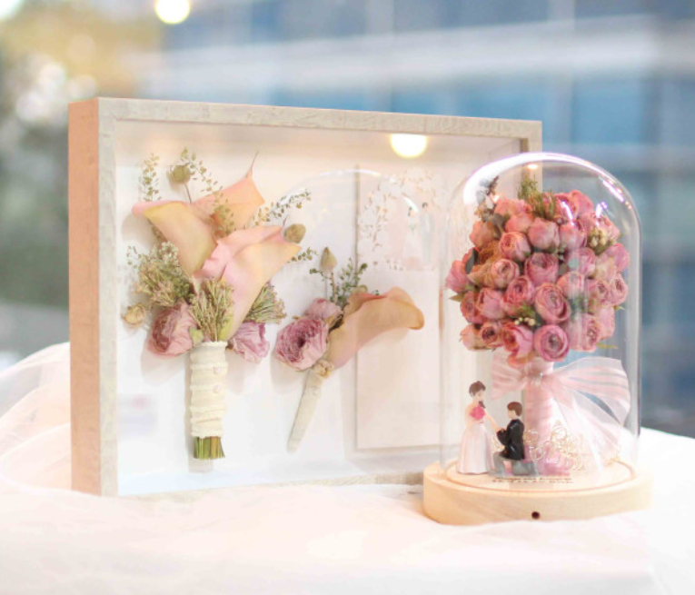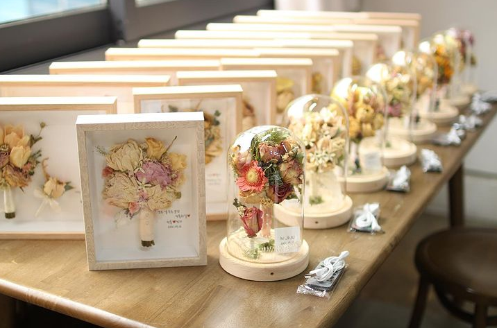 보통 부케를 받은 신부의 친구분들은, 부케액자를 만들어서 신부님에게 선물로 주는 경우가 많은데요