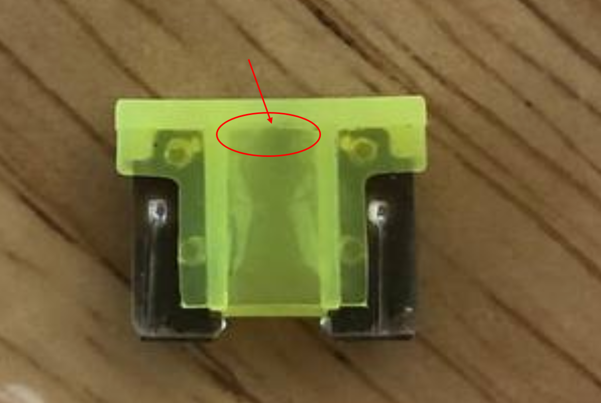 20이 뒤집어져 있지요? 저또한 이렇게 다시 장착을 하였습니다. 고장난 퓨즈를 확인해보니 쇼트로 인해 퓨즈 내부가 끊어져 있었습니다.